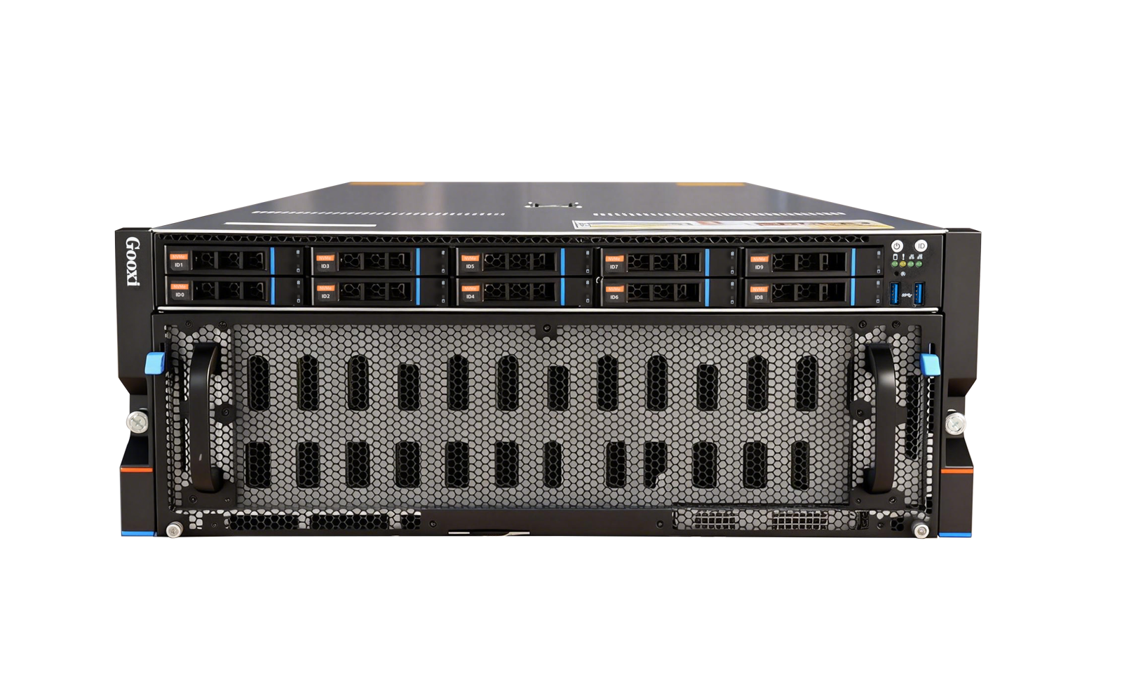 | 存储 | 前置:10*2.5 SAS/SATA/NVMe 内置: 60*3.5 SAS/SATA硬盘,支持热插拔,4个2280/2210尺寸 M.2 |